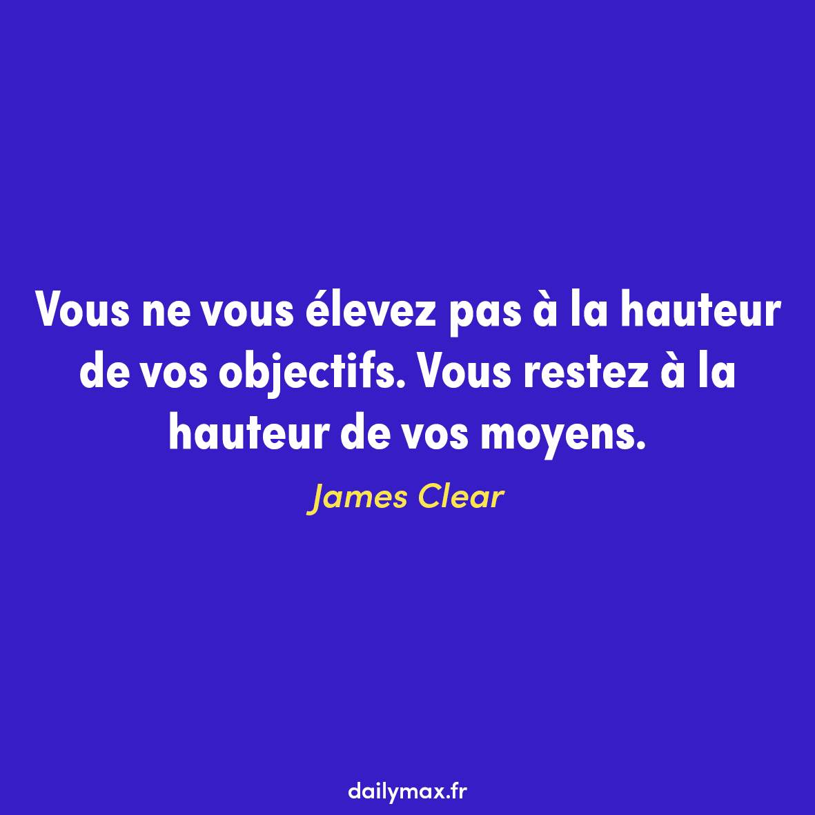“Vous ne vous élevez pas à la hauteur de vos objectifs. Vous restez à la hauteur de vos moyens.” - James Clear