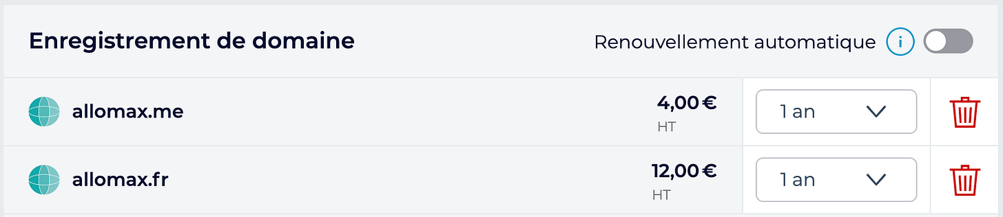 Petit parenthèse. J’adore acheter des noms de domaines sur Gandi.net. C’est mon petit péché mignon. Je viens de m’offrir allomax.me et allomax.fr pour un an. Ça coute rien et ça peut toujours servir.
