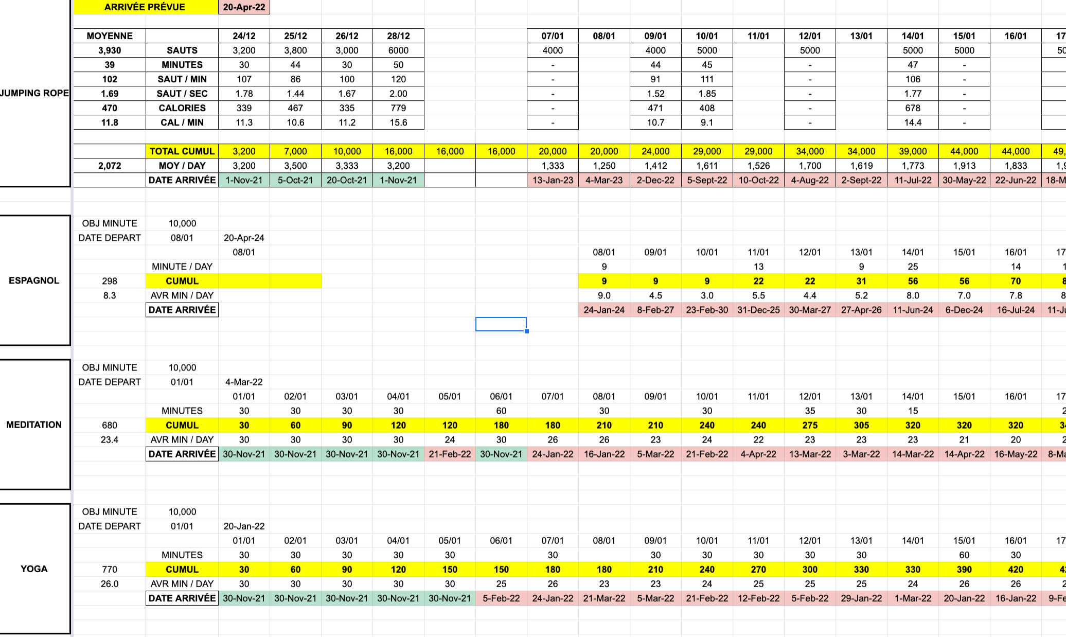 Plus j’y pense et plus je me dis que cela fait sens avec tout ce que je mets en place depuis 5 ans, de la promesse du dailymax “1% better every day” aux 300 rêves et challenges réalisés. Il suffit de jeter un coup d’oeil à mon propre système (cf graph) d’implémentation de nouvelles habitudes pour réaliser que je sais de quoi je parle.