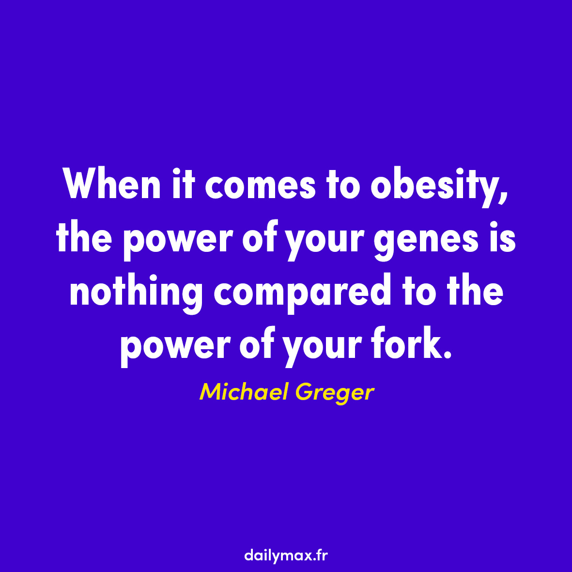 “When it comes to obesity, the power of your genes is nothing compared to the power of your fork.” - Michael Greger